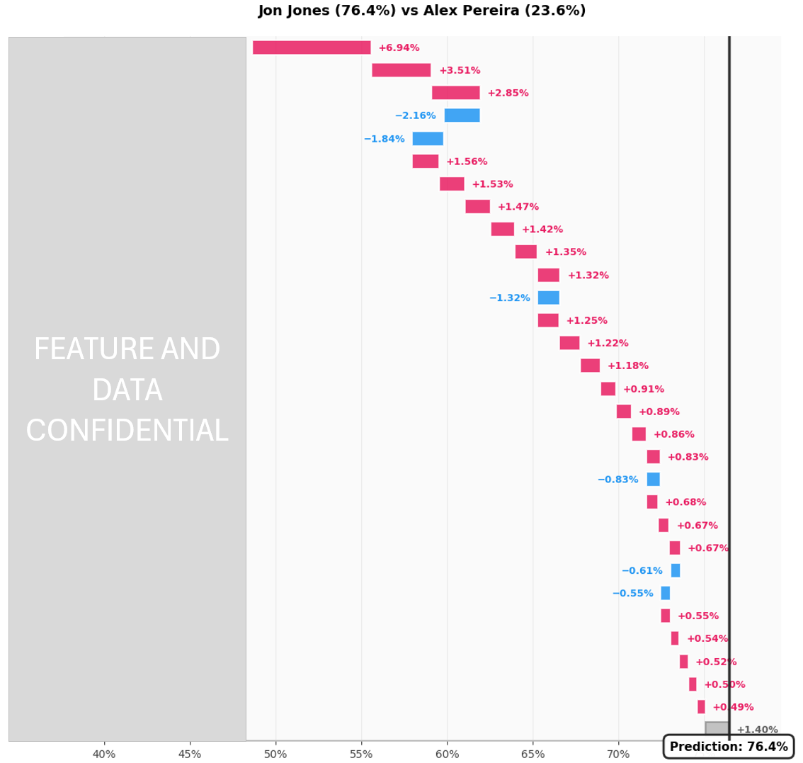 Le modèle prédit : 76.4% de chance de victoire pour Jones.