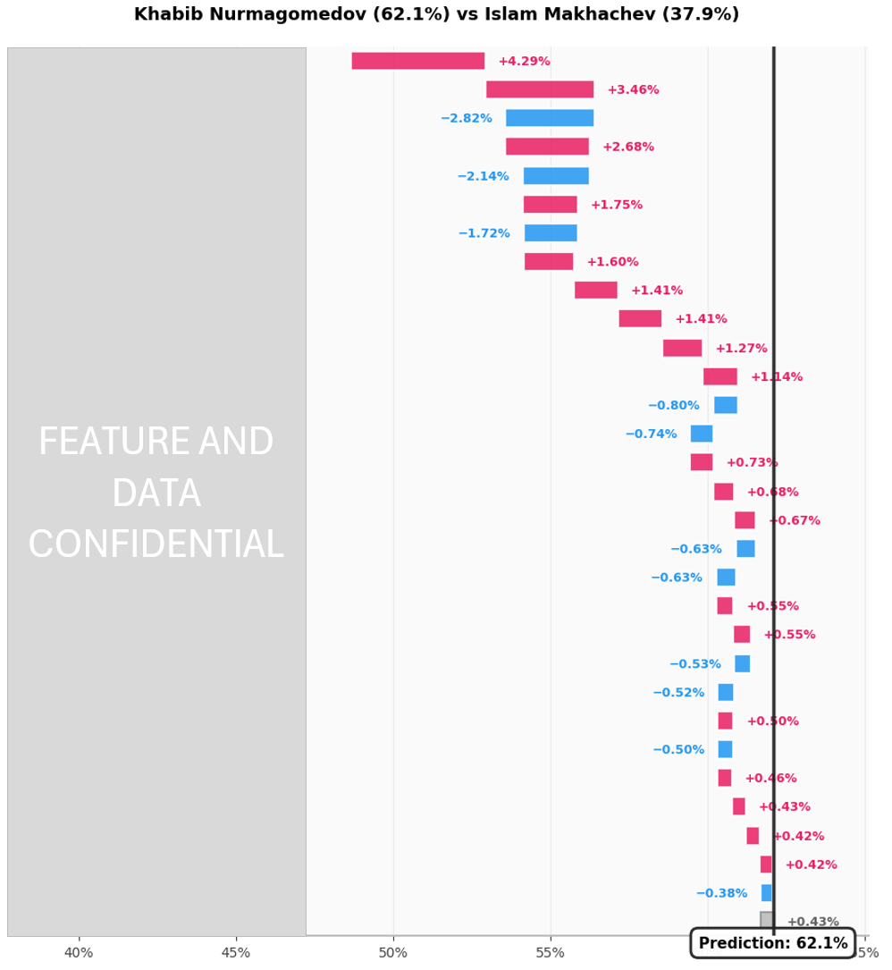 Chez SeeSports, nous avons développé un modèle de machine learning conçu pour tester ce type de débat à partir de données, en appliquant les mêmes exigences méthodologiques que pour une prédiction UFC réelle.